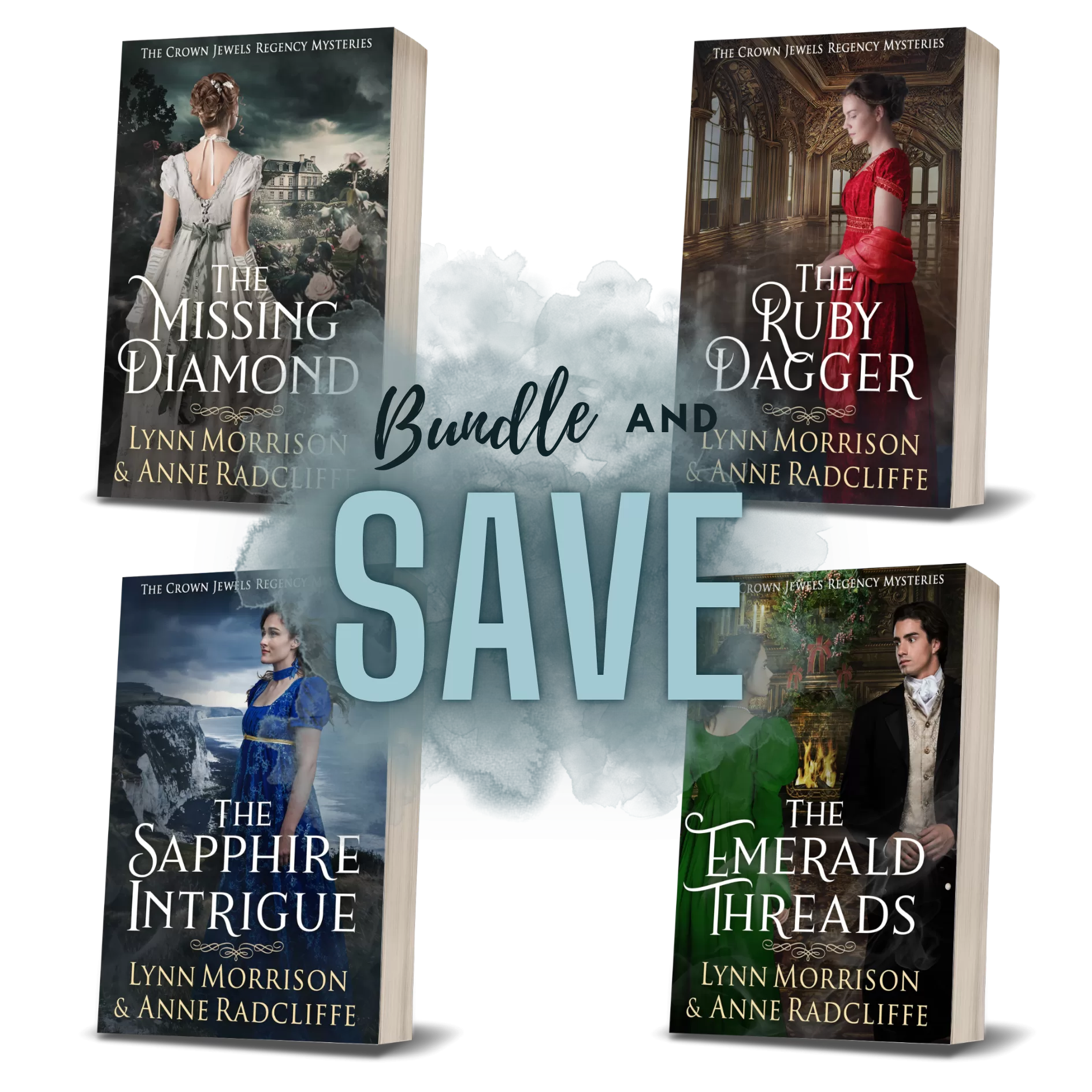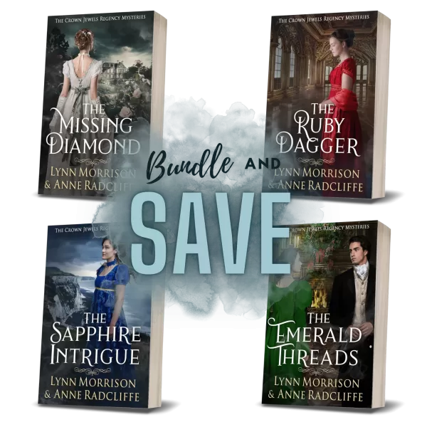 Get all four books in The Crown Jewels Regency Mystery series and save 25%. This bundle includes the complete series – over 1000 pages of romantic mysteries set in Regency England.